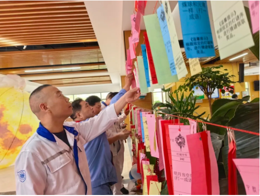 双节将至,中远海运发展所属上海寰宇宁波箱厂举行“情满双节 共叙团圆”主题活动。活动现场,汉服华裳、灯谜趣事、香甜糕点,纯粹开朗的笑容成为这个双节最珍贵的主璇律。现在,让我们一起回顾这场充满欢乐与温情的节日盛宴…… 灯谜区里悬挂了数百条谜题,涵盖字谜、成语、民俗常识,成了大家比拼智慧的“战场”。有的同事独自思考、认真琢磨,有的则围在一起“头脑风暴”,每当有人喊出“我猜到了!”,周围都会响起阵阵掌声。最终,大部分灯谜都被大家成功破解,不少人还拿着猜对的谜题向工作人员“炫耀”成果。 二、答题品糕区:甜蜜互动,温暖加倍 节日知识问答环节最是热闹!主持人随机点名,被选中的同事从容作答。问答题以日常“三个习惯、两个做法”、安全知识、环保分类、6S管理、质量要点等知识为主,充满自信的员工争先恐后举手盼着答题机会;没被点到的同事也不气馁,在台下为彼此加油鼓劲,偶尔还会“悄悄提示”。香甜的糕点搭配现场的欢声笑语,双节的温馨氛围直接拉满。 双节主题活动圆满落幕,但这份热闹与温情不会消散,它会化作我们往后工作中的动力,让每一次协作都多一份熟悉的暖意,期待下一次相聚,我们依旧能在这样的美好时刻里,共叙团圆情谊,共赴奋斗新程。 | |||||||